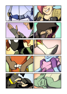 “Marissa Kelly, our art director, she was the primary person in charge for making sure the art came through, creating the art spec, working with M. But I did manage to have conversations with them and throw in my own input and I did get to watch the whole thing come together, and I was delighted and amazed! The whole thing started because Marissa said to me, ‘So, what kind of art do you want? Can you find any examples?’ And I went and I found some pieces M had done for what I think were alternate costumes for DC superheroes . . . these are great! I would love to get an art style that matches this. So [Marissa] was like why don’t we try to get this? I didn’t really realize that was an option! But Marissa very wisely made us go contact M, they were interested, it worked out, and it was awesome!”