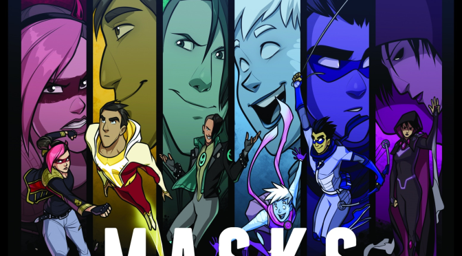 Masks: A New Generation is the teenaged superhero Powered by the Apocalypse roleplaying game from Magpie Games, and is now the focus of this latest series in the Adventure Log! Like many PbtA games, character creation and a certain amount of world-building is a group activity that comes up front. Everything up above I’ve cleaned up and put together, but all of it was basically created by the players while they were answering questions on their playbooks, talking back and forth among themselves and with me the MC, and by answering the ‘how the team came together’ questions.