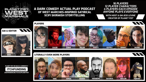 Luckily, it won’t be my last time on Sixaura. As part of the itchfunding campaign, PLANET FIST is getting an actual play miniseries, so you’ll be able to hear me getting blasted to bits on PLANET FIST: WEST MARSHALS very soon as part of a cast I’m really excited to play with.