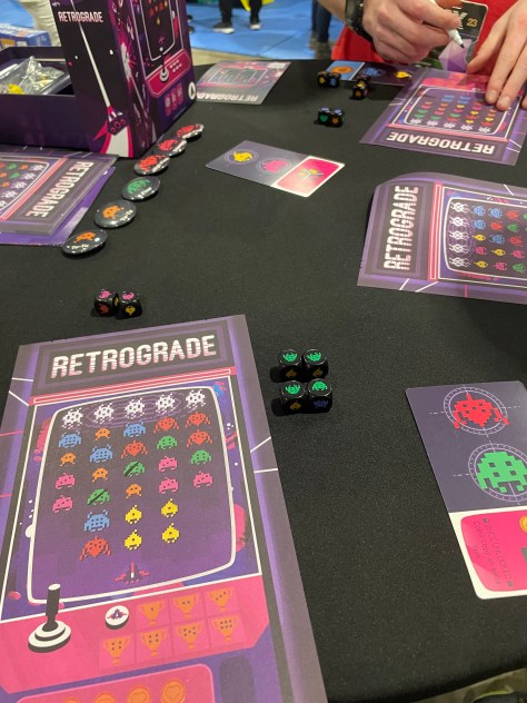 Retrograde isn’t quite a ‘party’ game that you can play three drinks in, nor is it going to scratch the itch of those looking for a complex strategic challenge. It is, however, decidedly stylish and good, fast-paced fun that can find a home as a ‘with the kids’ game, a starter or side game for a larger game night (or convention), or for when you just want to roll some dice solo and blast some ‘Droids without getting into the arcade machine market. It has an estimated playtime of thirty minutes and recommended age of 8 and up, although realistically speaking I could see both of those being a bit lower depending on who’s playing.