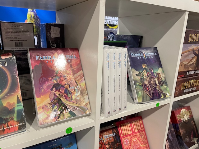 Studio 2 provides shelf space for many, many games. This includes everything Fabula Ultima, including the High and Techno Fantasy books and the GM’s kit, and Cowboy Bebop. Going to listen to a bit of Trifecta Tango on the way home.