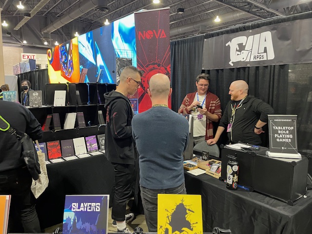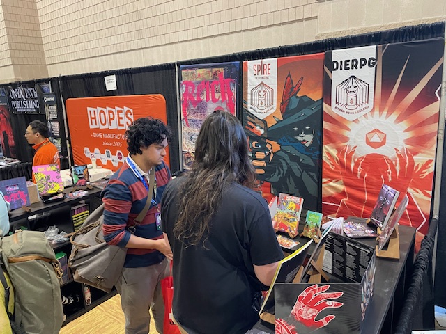 Whether you want to Eat The Reich, be unbound, or deal emotional damage in a TTRPG isekai/Jumanji situation, you can swing by RRD’s booth to get what you need. For the DIE aficionados, they have the first two supplements available as well, and a bunch of other interesting pieces of work.
