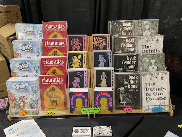 They’ve got your Wanderhome, your Sleepaway, but perhaps most notable is there being room for everyone at Yazeba’s Bed & Breakfast. Distribution for the magical slice of life legacy game has been a bit of a fracas – legal sorceries have kept Possum Creek from telling us why, and the spilling of the tea is acutely anticipated – so copies in the wild have been harder to find. At this con, though, you can get the goods straight from the source.