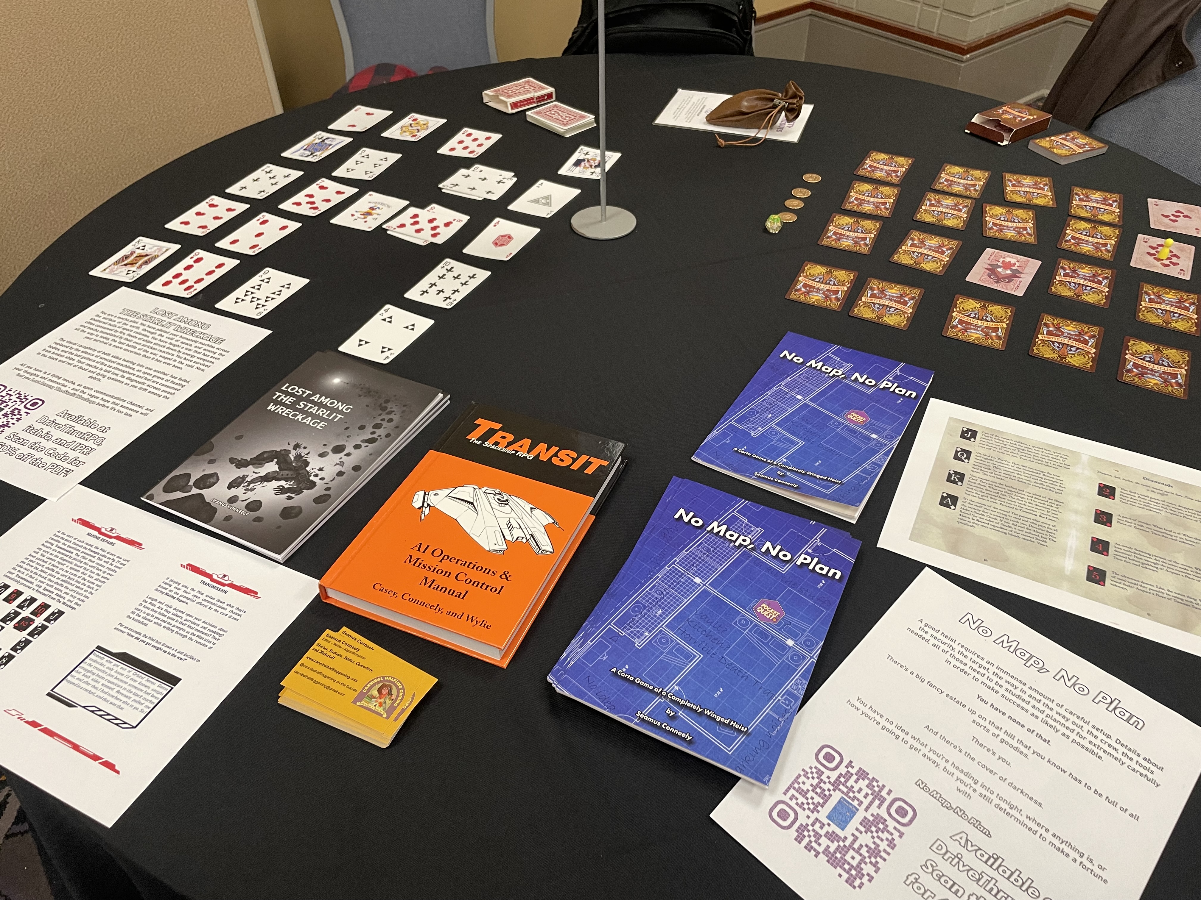 PAX and GoD had a little chat a few months before the convention, and based on the fact that quite a few GoD volunteers (among other folk running games with the other outfits) are game designers themselves, it was decided that some of the space would be given over to said designers to show off their creations. It would be early on Saturday, using GoD’s second room before the crush of the day filled every table with running games, and there’d only be two one-hour slots, but the designers wouldn’t have to pay or do anything but show up to set up their displays.