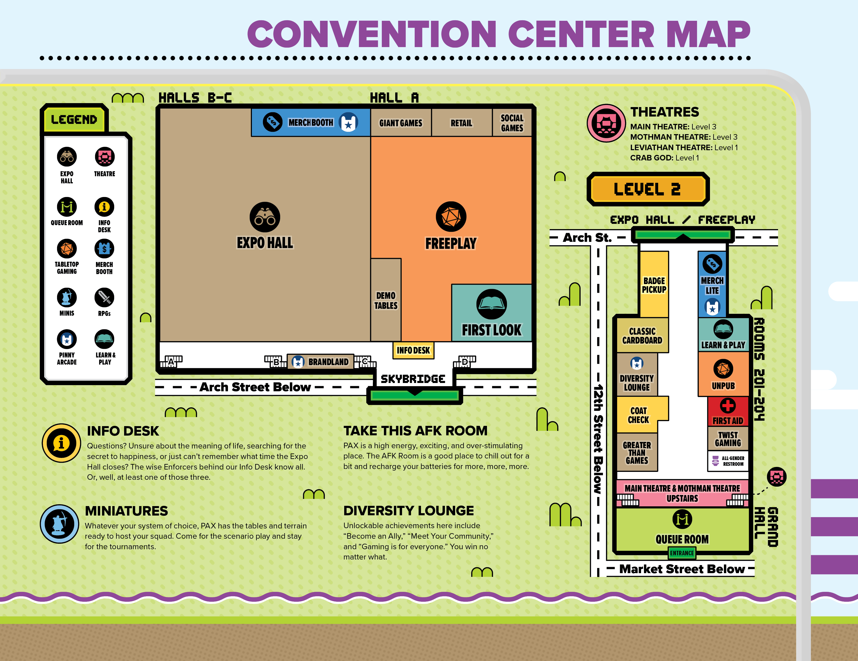 Well, first of all PAX Unplugged has become a fair bit better organized, and a fair bit larger. Just for comparison, here’s the oldest map I was able to dig up, from the 2018 PAXU.