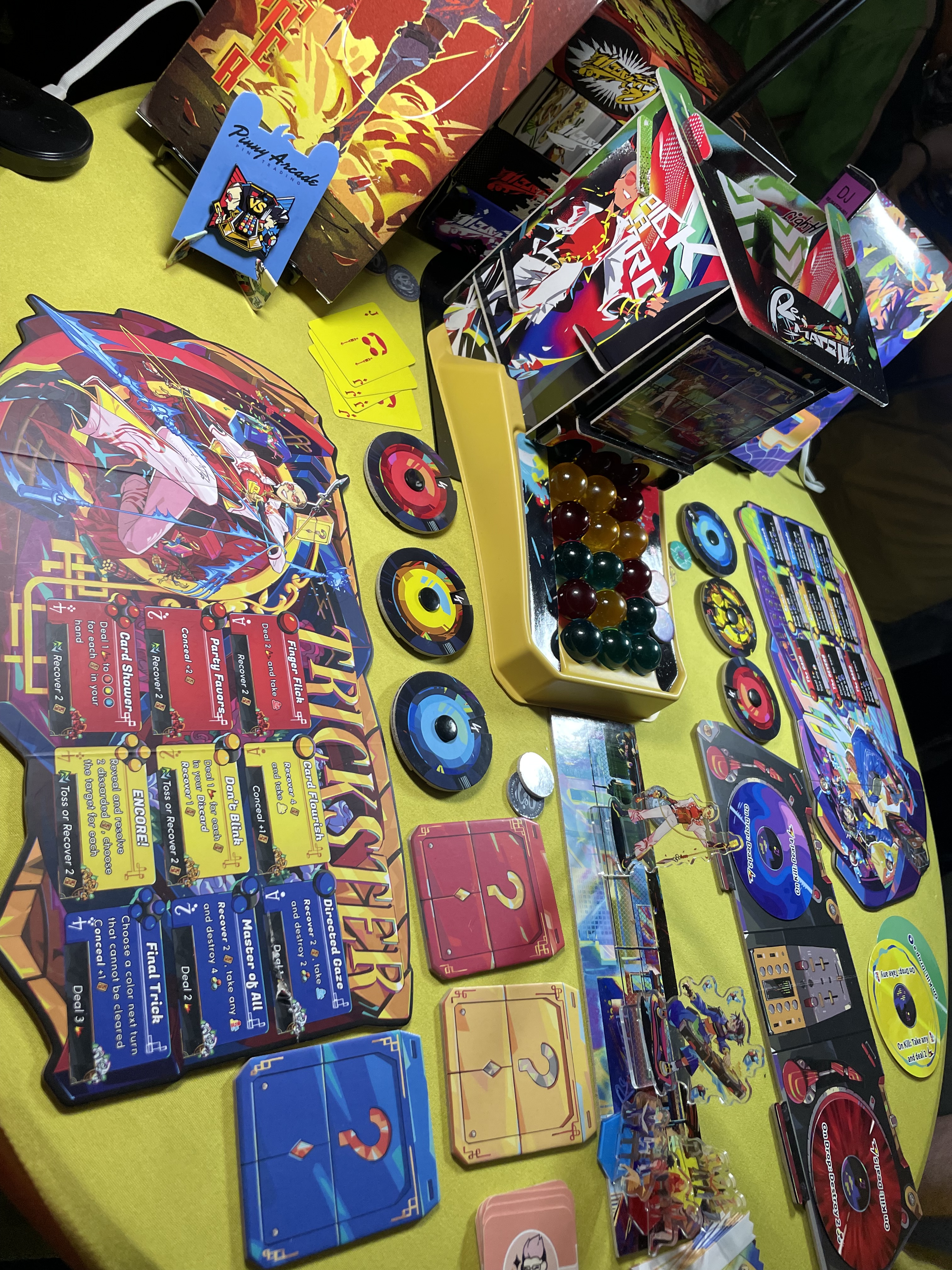 Brought to us by Brother Ming Games, re:MATCH is of the put-a-video-game-on-the-tabletop genre, like Retrograde from a few PAXi ago. In this case it’s a 1v1 fighting game, with unique characters and a falling marble puzzle-like mechanic.